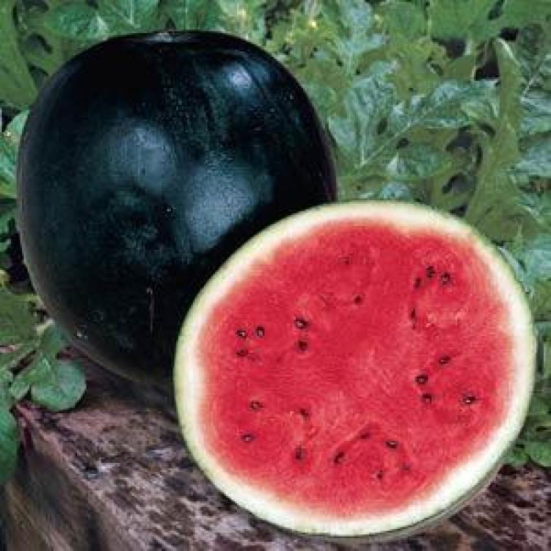 Everyone’s favorite "icebox" type, the round, distinctively dark green 'Sugar Baby' is a convenient 8-12 lbs of sweet quality. Its firm, solid flesh is bright red, crisp and delicious with small, dark brown seeds.