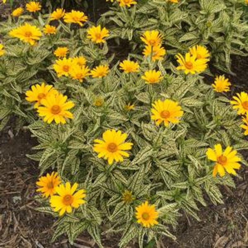 'Sunstruck' is an easy-to-grow, upright perennial with golden-yellow sunflower-like blooms over green and silver variegated foliage. Its large cherry flowers and striking foliage are equally impressive!