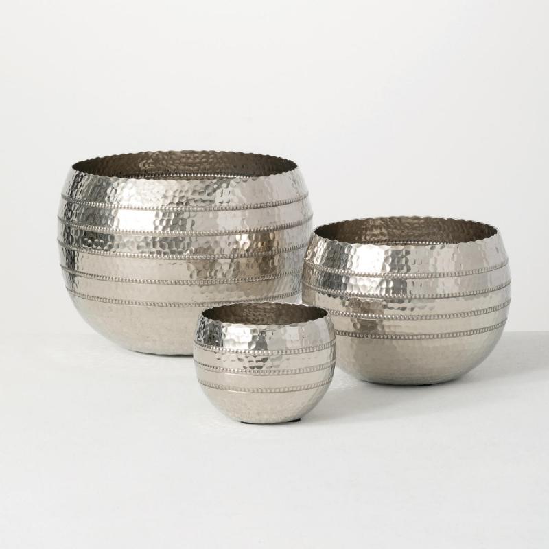 Elegance and sophistication exude from these textured shiny silver vases. Perfect alone or with some faux greenery added, the 3.75", 6", and 7.5" height of these pieces fit in anywhere. Each sold separately.