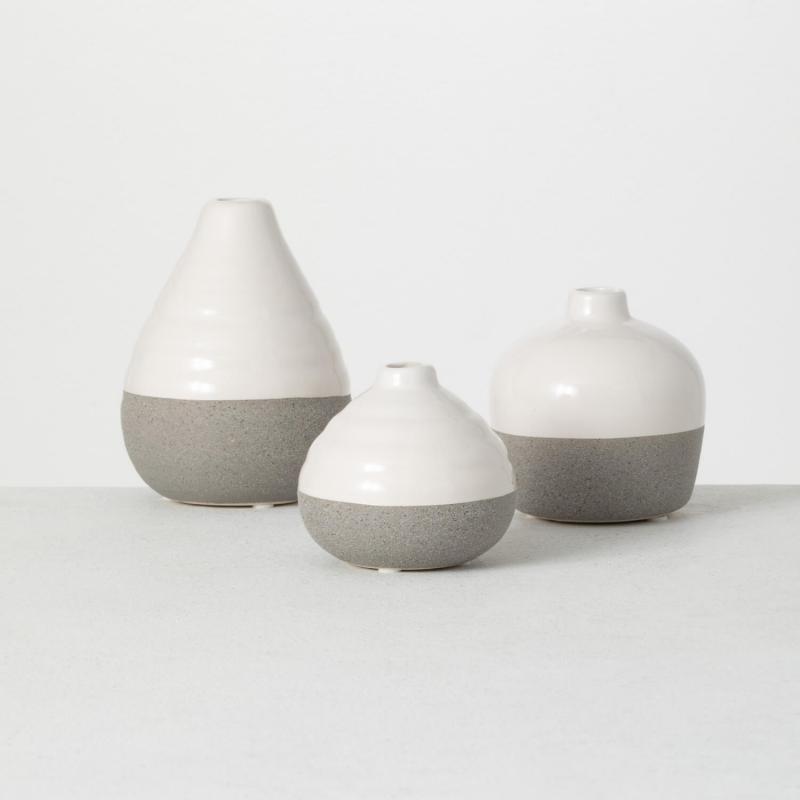 This trio of ceramic vases make the perfect vignette in any setting. Simply place a few of your favorite stems in them and watch them really shine in a room.