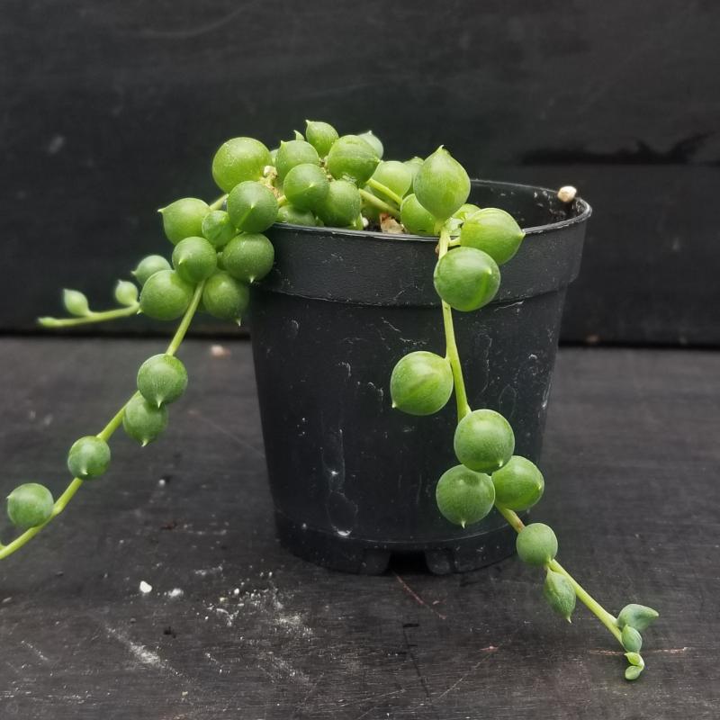 A unique and whimsical trailing succulent with bead-like leaves that resemble green pearls strung along slender stems. Ideal for hanging baskets, shelves, or decorative planters, this plant adds visual intrigue and charm to any space.