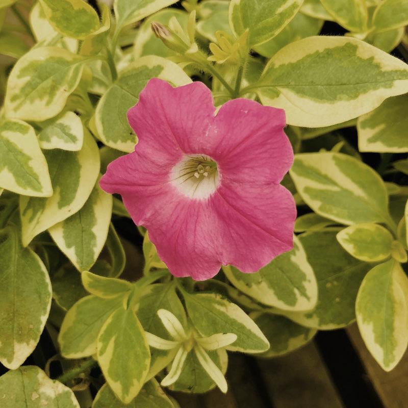 The must-have for any container! This variety sports brightly colored variegated foliage. The perfectly placed flowers are a complement to the fine foliage.