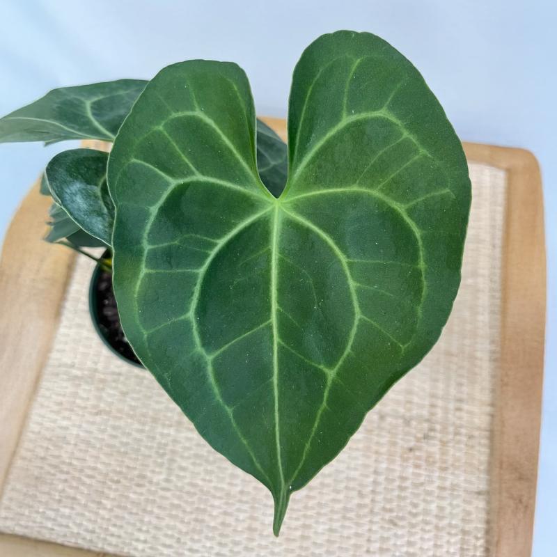 A striking hybrid Anthurium prized for its large, velvety, heart-shaped leaves and bold, defined veining. ‘Pterodactyl’ combines sculptural presence with a tropical feel, making it a showpiece for collectors and modern interiors alike.