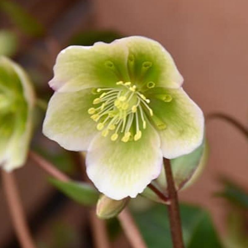 A delicate, early-blooming hellebore with soft ivory-white flowers blushed in green and rose. Long, nodding blooms appear from late winter well into spring, offering extended color in shade gardens. Evergreen foliage adds texture and winter interest.