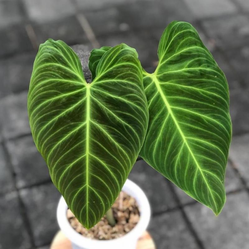 An elegant hybrid of Philodendron melanochrysum and Philodendron verrucosum, 'Splendid' boasts large, velvety, heart-shaped leaves with striking lime-green veining. This rare tropical climber adds dramatic texture and luxury to indoor plant collections.