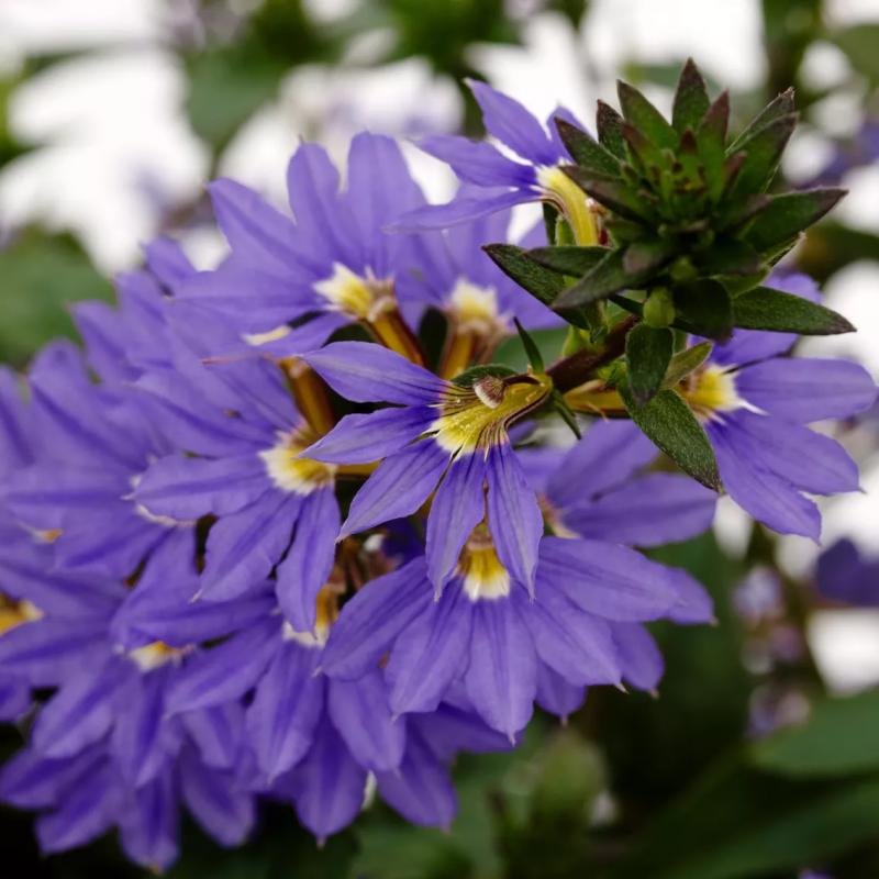 Striking fan-shaped deep blue blooms cascade over lush green foliage, creating a bold trailing display. Heat and drought tolerant, this vigorous variety flowers continuously without deadheading and thrives in summer conditions.