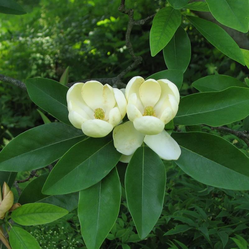 The large, softly lemon-scented, white tulip-like flowers of this variety arrive in late May and are suspended among large, strap-like foliage with downy undersides. It will also bloom sporadically throughout the summer.