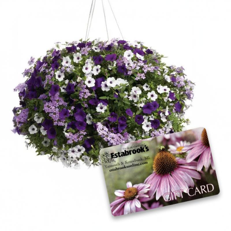 Brighten someone's day with a stunning lavender-themed hanging basket overflowing with blooms - perfect for porches, patios, or garden hooks. Includes a $50 Estabrook's Gift Card for even more garden inspiration. A gift that blooms and gives!