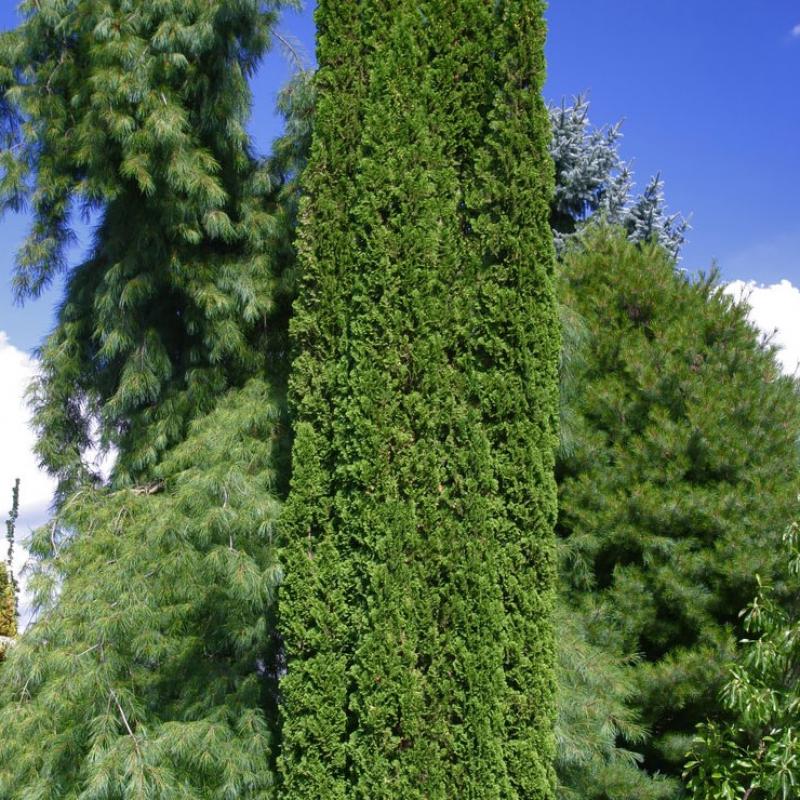 This elegant, narrow and columnar form of American Arborvitae is unique both for its form and refined texture, which boasts deep emerald green, fanned leaves. A traditional plant, 'Degroot's Spire' is textural enough for today's landscapes.