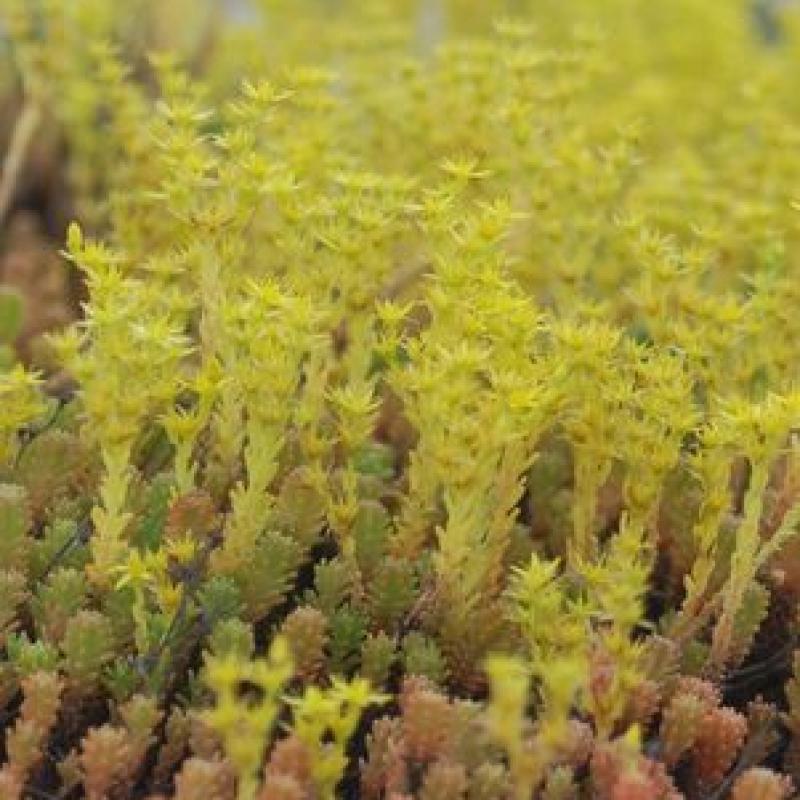This variety forms a low carpet of tiny, spiraling, bright green leaves that spread to form a thick patch. The foliage will develop a bronzy-green color that provides late season interest and tiny, yellow, star-shaped flowers appear in late June.