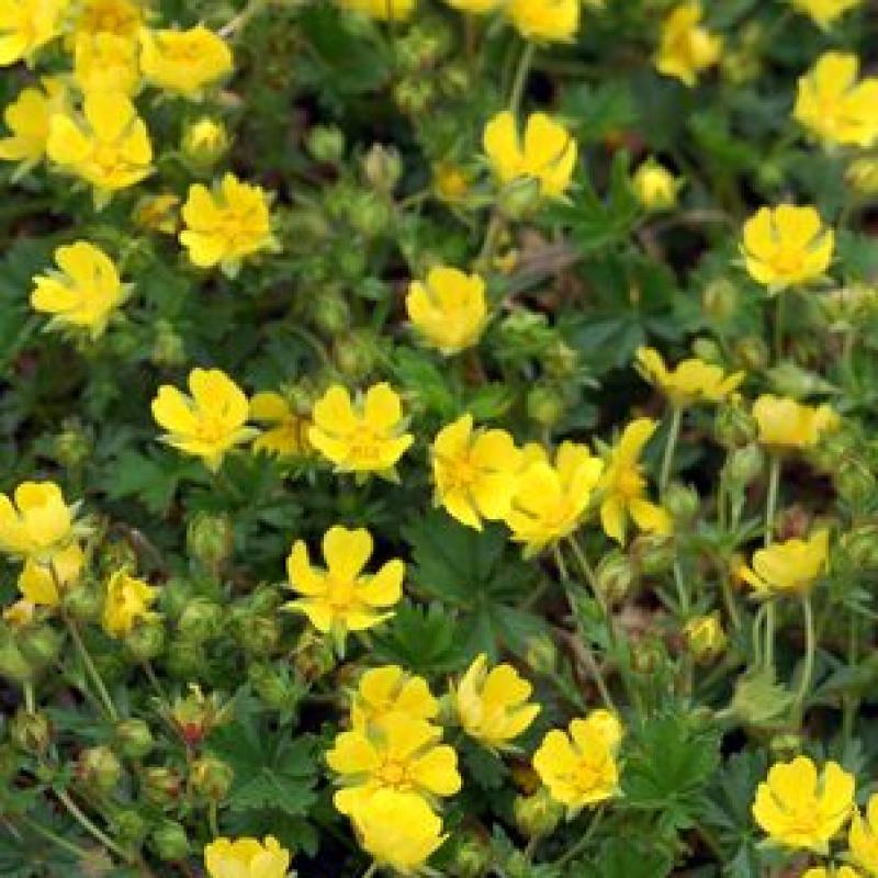 Alpine Cinquefoil is a delightful little carpeting plant that is nice for growing between flagstones or as a drought-tolerant lawn substitute. Single, yellow, buttercup flowers will nestle among the small evergreen leaves in late spring.