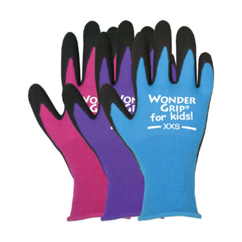 Wonder Grip Glove for Kids feature a vivid 15-gauge nylon knit liner with the Wonder Grip proprietary micro-porous coating formula on the palm and fingertips allowing superior grip.