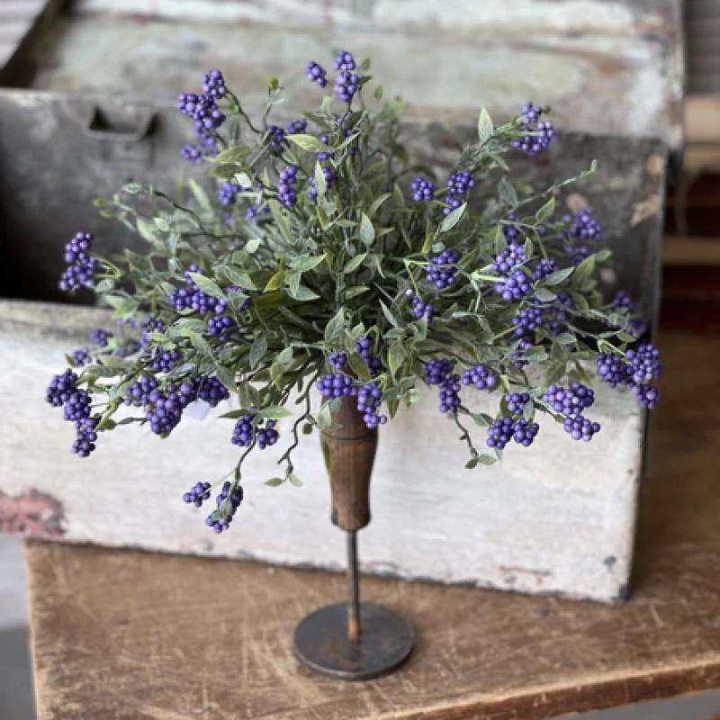 A lively collection made up of colorful berry clusters that spring from arching stems punctuated with small leaves. Has a cheerful and airy feel.