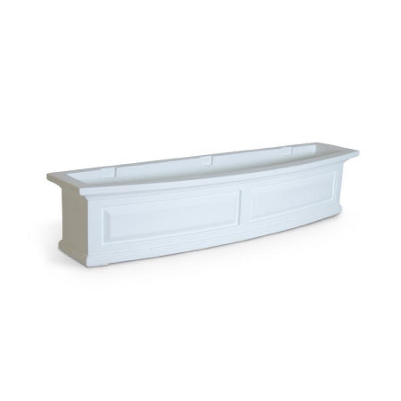 The new Nantucket window box features a bowed front, raised panel design, pronounced crown molding detail and built-in overflow drains. Decorative brackets offer a beautiful finishing touch with a classic look (brackets sold separately).