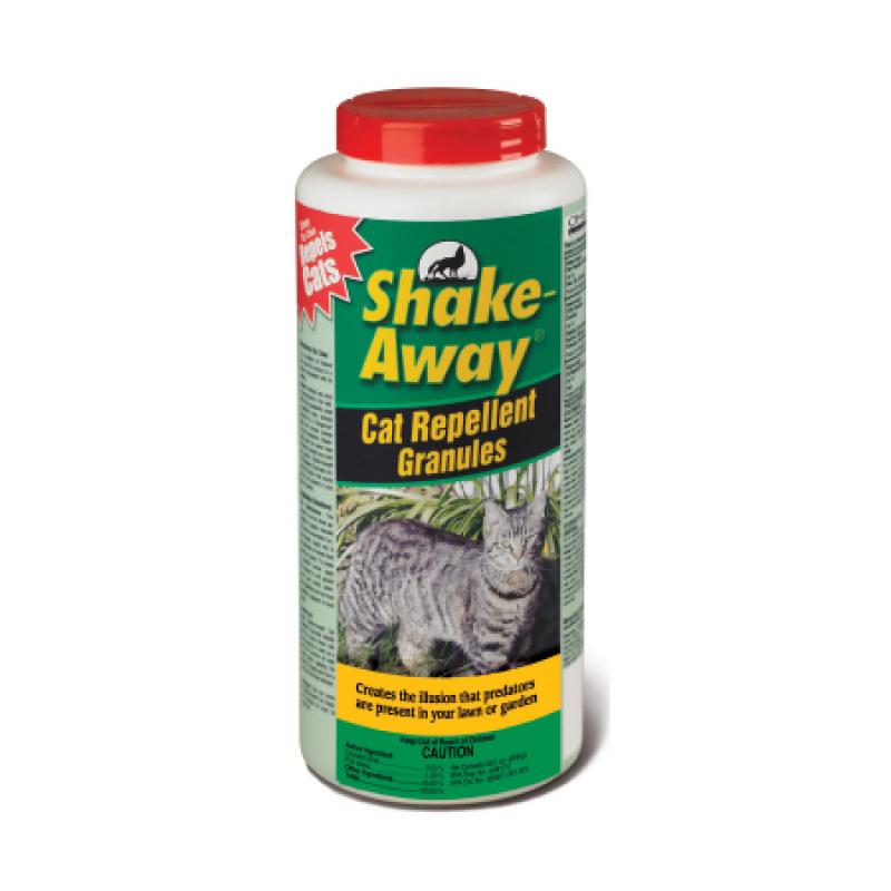 Shake Away Cat Repellent Granules keep your cat or the neighbors cat from using your garden as their own personal litter box or spray area. Effective ingredient is a combination of coyote and fox urine. Perfect for domestic cats.