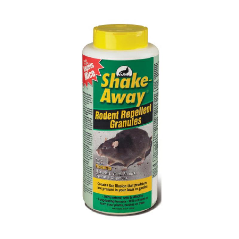Shake-Away Rodent Repellent Granules use a combination of fox and bobcat urine to keep pesky rodents at bay. Perfect for mice, rats, voles, shrews, squirrels and chipmunks.