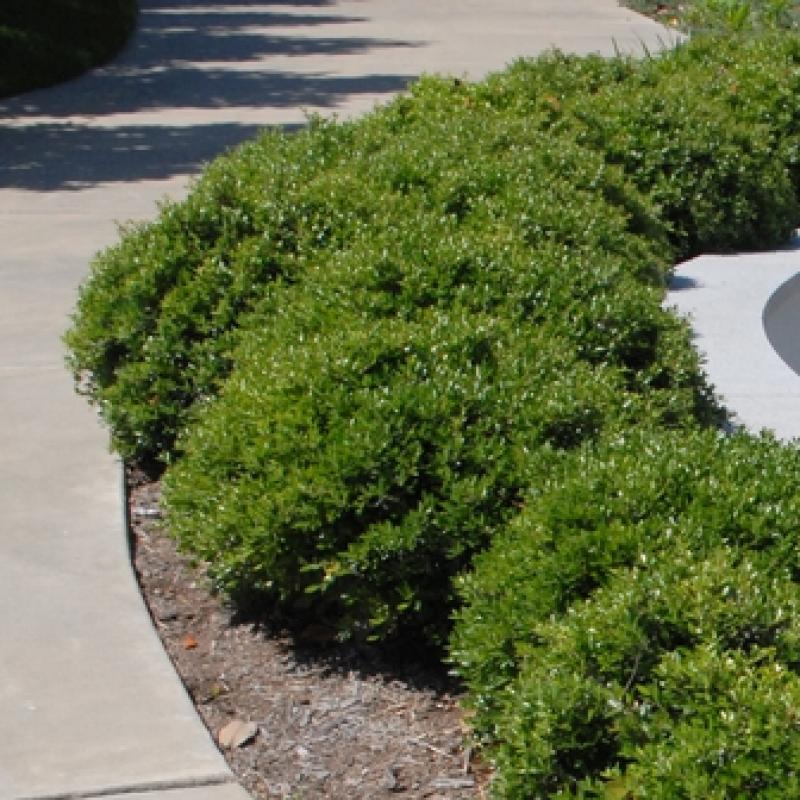 Dense growing and globose, this variety sports dark shiny foliage that has an attractive natural shape and needs little maintenance. The young stems have a purplish cast and the berries are favored by many songbirds. 'Compacta' will grow in sun or shade.