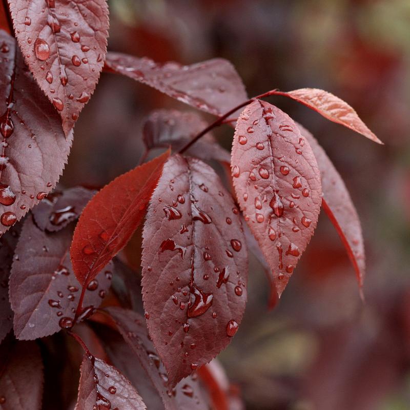 The fragrant, single, pink flowers of this cultivar bloom in late April before the foliage emerges. It seldom bears fruit, but has beautiful, glossy, deep purple foliage throughout the growing season.