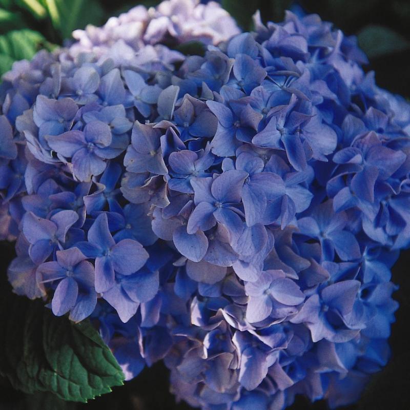 Large blue or deep-lavender mophead flower balls smother this prolific bloomer that will form a rounded habit.