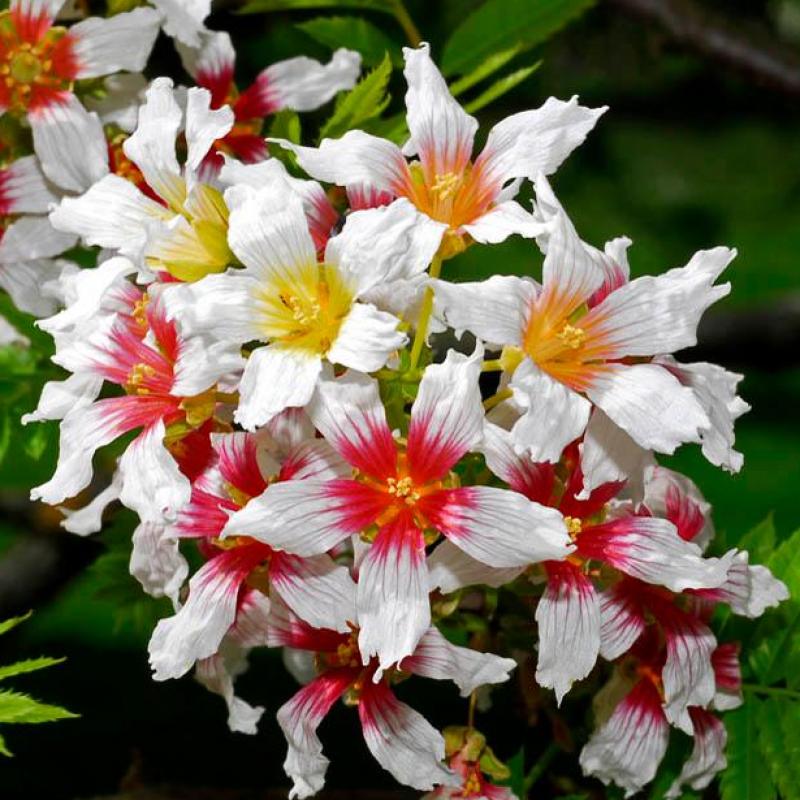A rare and eye-catching flowering shrub or small tree known for its masses of white, star-shaped blooms accented with yellow and red centers. Attractive fern-like foliage adds texture through the growing season, followed by ornamental seed pods in fall. An unusual, show-stopping specimen for sunny landscapes.