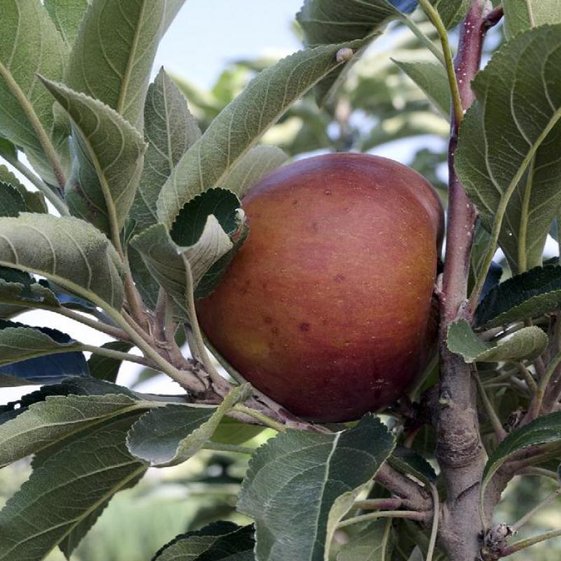 'Red Delicious' produces deep red, heart-shaped apples with a crunchy, mildly sweet flavor that are excellent for storage and fresh eating. Plant with another variety for cross pollination.