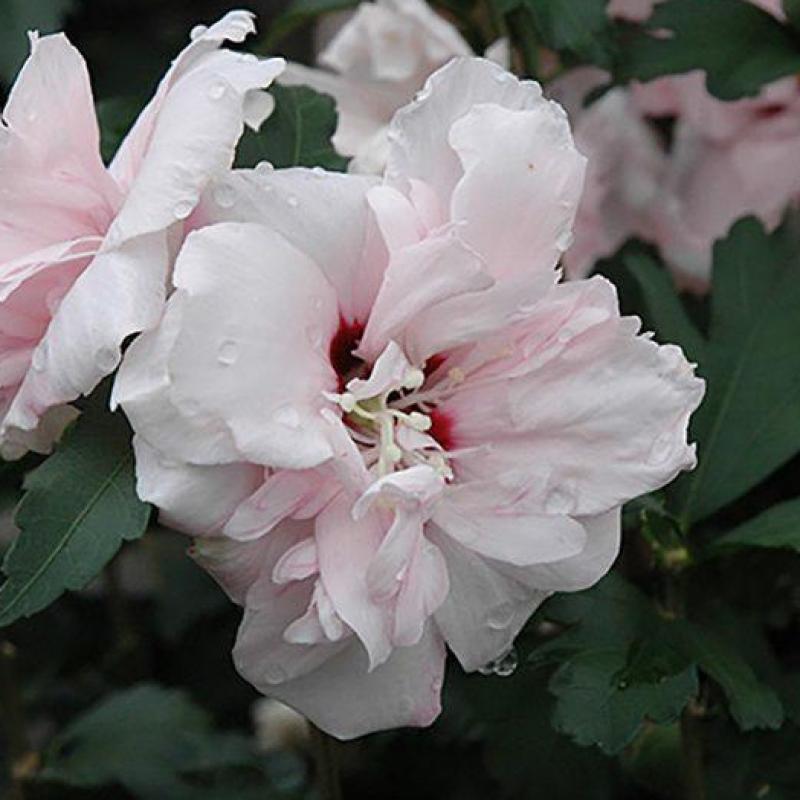'Blushing Bride' offers double white and blush pink flowers from late July to September and can be used as a shrub or a small tree.
