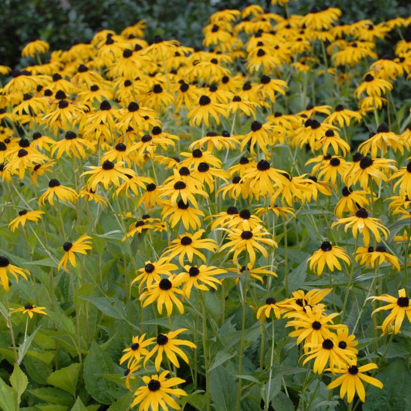 A garden favorite! The deep green, disease resistant foliage of 'Goldstrum' gives rise to vibrant, orange-yellow flowers with prominent brown "eyes" that will bloom from mid August until fall.