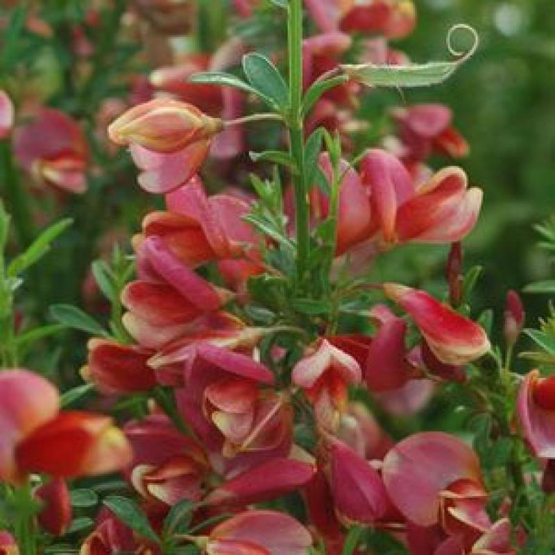 The blooms of 'Burkwoodii' begin bright red with whispers of yellow and then darken to maroon and purple-burgundy, all the while floating amongst deep green thread-like foliage.
