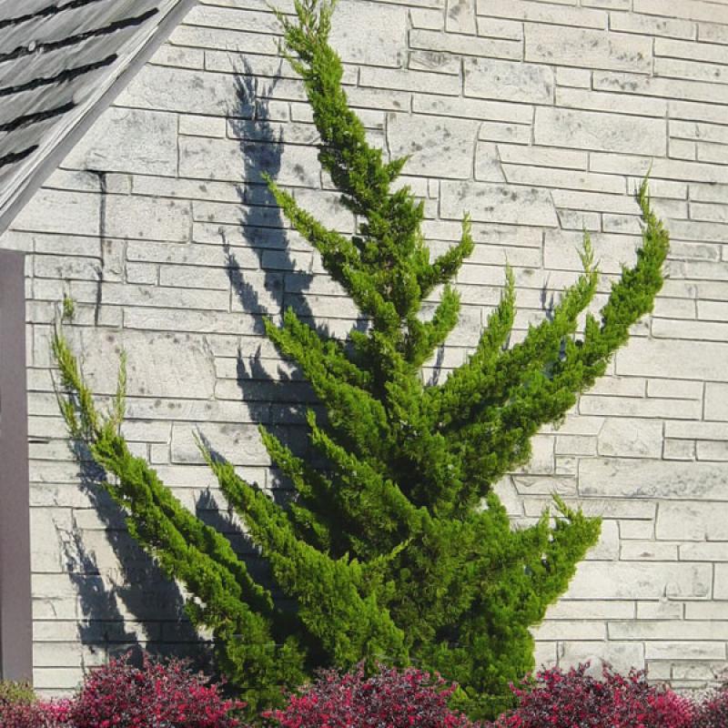A dramatic, upright evergreen with twisted, irregular branching that creates a sculptural silhouette. Its rich green foliage adds year-round color and texture, making it a standout specimen plant. Excellent for coastal landscapes, urban gardens, and Asian-inspired designs.