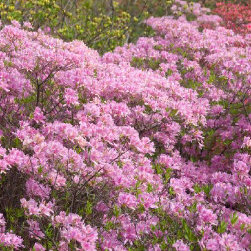 The distinctively shaped, orchid-colored flowers of this selection appear during early May on vigorous plants with disease resistant foliage.