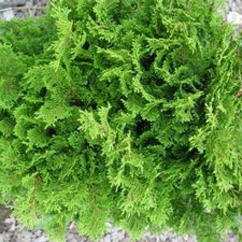 This rounded dwarf evergreen features fan-shaped branchlets that are deep green and hold yellowish green new growth.