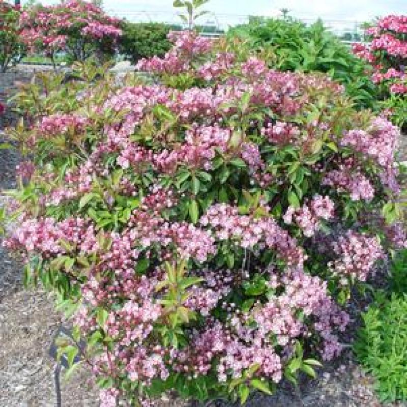 The lavender-pink buds of 'Olympic Wedding' have maroon bands inside the flowers and appear in late June to July. The foliage is brushed with burgundy in fall and creates a wide to rounded form with a somewhat blowsy look.