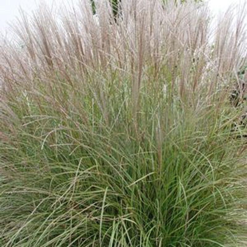 A shorter Maiden grass, the green blades of 'Adagio' are highlighted with a silver midrib and beautiful airy plumes emerge silver then blush to pink-tan in late August to September. It also provides excellent winter structure.
