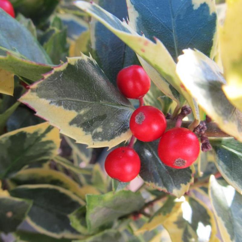 If you think you've seen everything the holly world has to offer, guess again!! You'll be stunned by the superb creamy variegation displayed by the foliage of this pyramidal growing descendant of 'Blue Maid' and you'll marvel at the great landscape look and berry set of this remarkable plant. A "must have" selection that will stop traffic in your garden center.