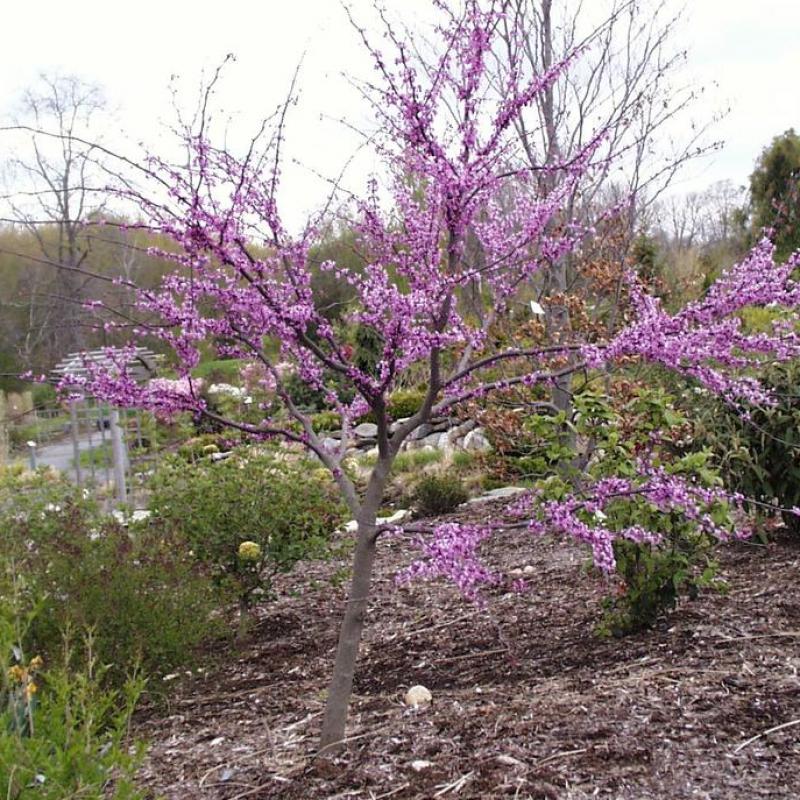 A striking small tree prized for its heart-shaped, burgundy-purple foliage and brilliant magenta-pink flowers that bloom on bare branches in early spring. Adds four-season interest with vibrant fall color and a graceful branching structure.