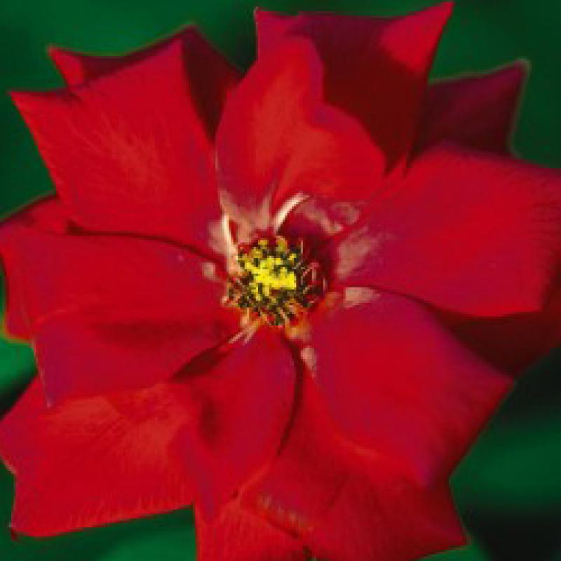 Impressive clusters of bright scarlet, double, cupped blooms that show a yellow center through fall. With a moderate tea rose fragrance, this variety is an excellent addition to the landscape.