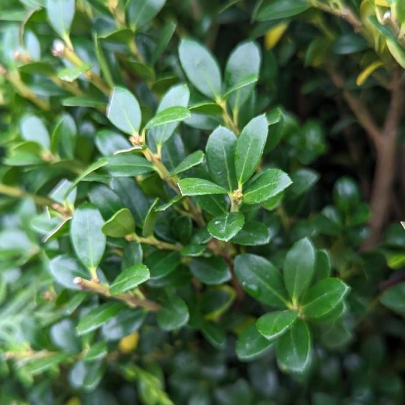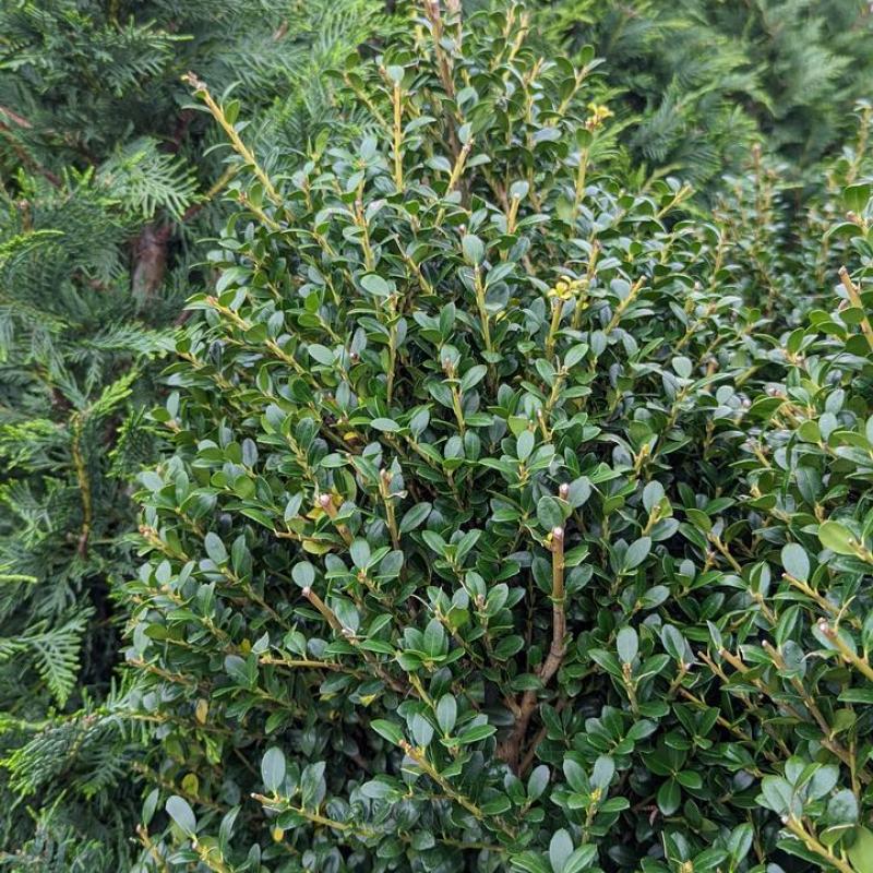 A dense, upright Japanese holly with small, glossy dark green leaves and a naturally pyramidal to columnar habit. Strong structure and year-round evergreen color make it an excellent boxwood alternative for hedges, screening, and formal landscapes.