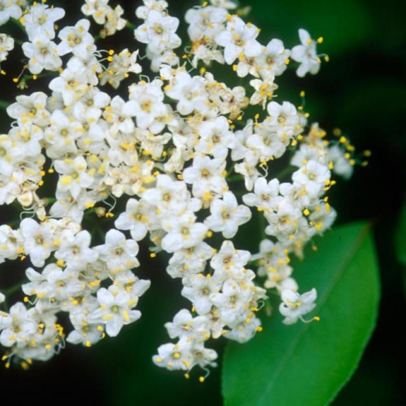 Bold and aggressive, this upright growing shrub may even take on the form of a small tree in the landscape. It displays big, deep green foliage that emerges in early spring and provides the backdrop for big 4-5" diameter flattened heads of fragrant, creamy white flowers in mid May. Bluish-black berries are a prized late summer through winter food source for birds and small mammals, a convenient plus since this Viburnum is a favorite nesting plant for these same critters. Plant this selection singly or as a large area hedge in most any location since prunifolium tolerates shade and a wide range of soils from moist to dry. Plant it in a place where you can enjoy the red to purple fall foliage show that closes the growing season with a bang!
