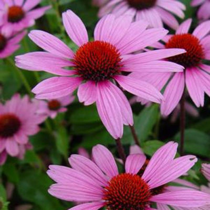 'Ruby Star' offers deep pink flowers that are flat in form and can reach 6" across that emerge on strong stems and feature a unique cone that is deep red. The flowers will bloom all summer until frost.