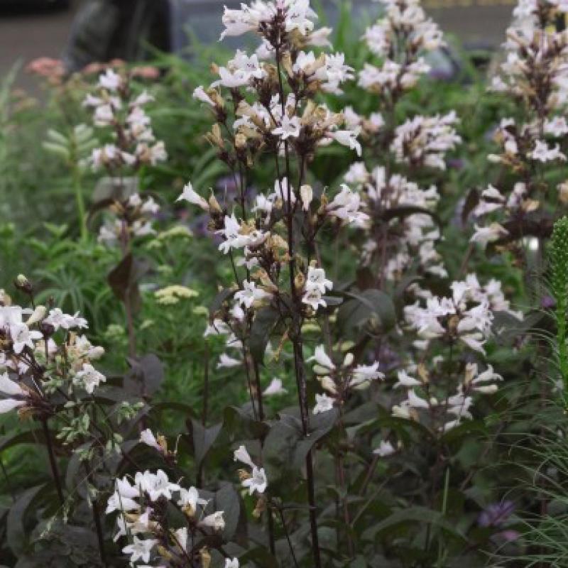 Reddish-bronze foliage, stems with spikes of white, tubular, pendant flowers in June and attractive burgundy seedpods contributed to this plant being named the 1996 Perennial Plant Association Plant of the Year.