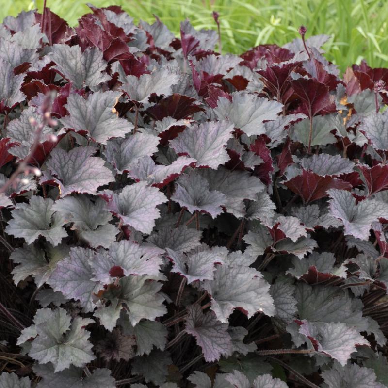 'Frosted Violet' combines the vigor and large habit of the Heuchera villosa forms with the leaf silvering of 'Silver Scrolls' and its close relatives. In spring, the leaf coloration is a wonderful pink-violet that is unlike any other variety.