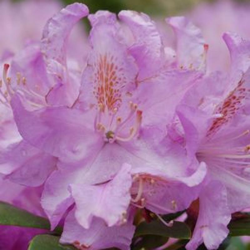 The deep purple buds of 'Minnetonka' open to light purple flowers with lighter centers that have striking yellow-green spots on the upper petals. A dense habit will grow wider than tall and features glossy, medium green leaves.