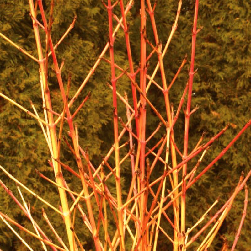 'Arctic Sun' is a dwarf selection that displays beautiful yellow stems with tips of deep red coloration in winter and a great yellow-orange fall color.