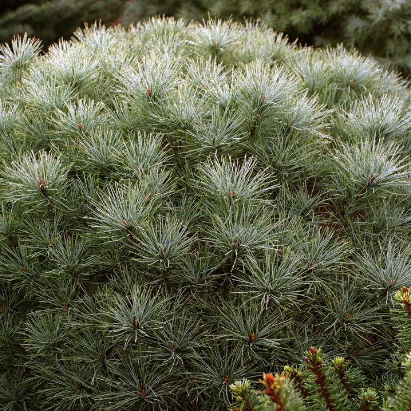 One of the finest of the very small selections of White Pine, the short, soft needles of 'Sea Urchin' display more blue than other types and form a dense, compact form that is very attractive.