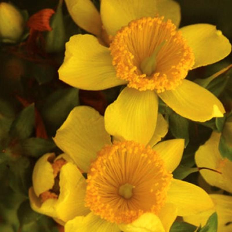 A compact form that creates a mound of deep green leaves, 'Sunny Boulevard' produces deep golden yellow flowers that have fluffy clusters of stamens at the center beginning in July and August.