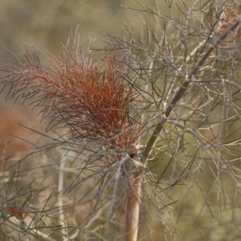 This plant will form a layered, bulbous growth of finely textured, purple-bronze foliage at the soil line that can be eaten as a vegetable. Bronze Fennel will also self-sow readily.