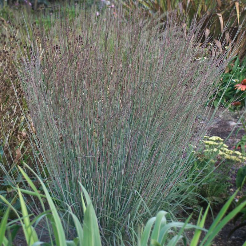 A taller more upright habit combined with bright steel-blue blades flushed with purple makes this a native standout. Tawny seed heads appear in late August and a fall color that includes orange and deep purple will extend the interest.