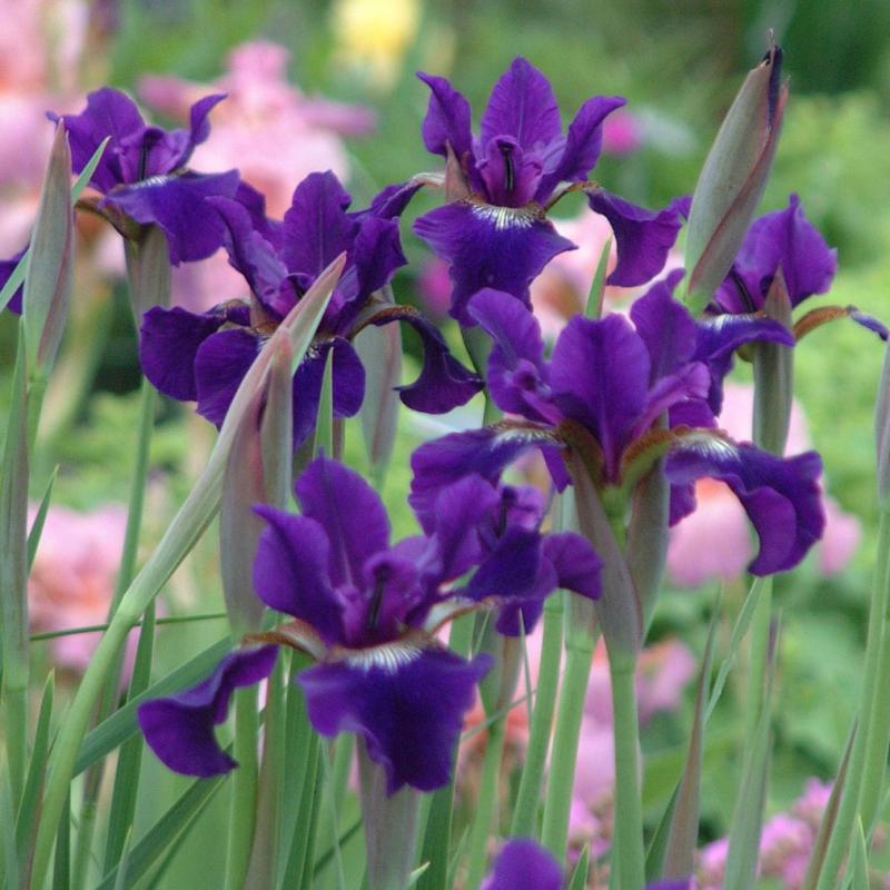 Features ruffled petals of deep wine violet that appear in mid to late June. Bred in Harpswell, Maine by Dr. Currier McEwen.