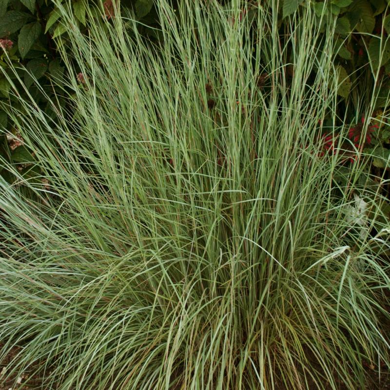 'Prairie Blues' is a lovely and tough selection with thin gray-blue, ribbon-like foliage. As fall approaches, the foliage takes on hues of orange and red.