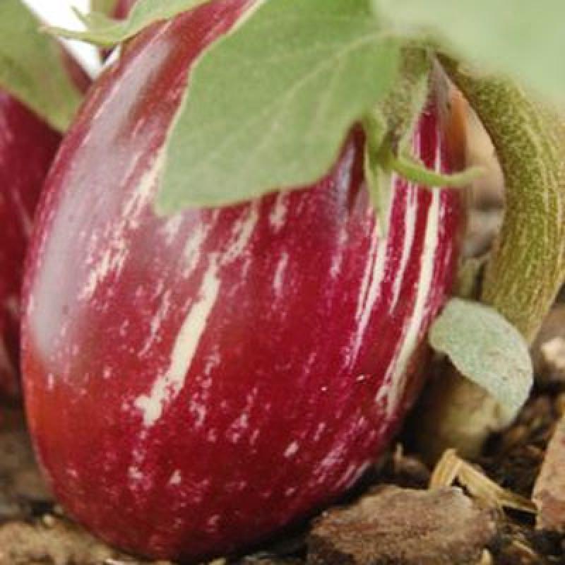 A high yielding flavorful and tender asian variety with 3-4" oval fruits striped in purple and white. Spineless plants make for easy harvesting. 64 days to maturity.